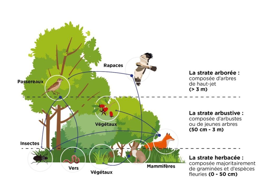 Les haies constituent des réseaux écologiques fonctionnelles constitués d’un ensemble de réservoirs de biodiversité et de corridors écologiques pour assurer le déplacement et le maintien de la faune et de la flore !